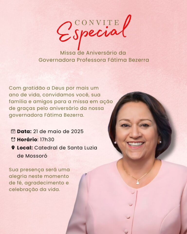 A governadora chegará à cidade na véspera, quarta-feira, para participar de uma missa em ação de graças pelo seu aniversário, às 17h30, na Catedral de Santa Luzia.